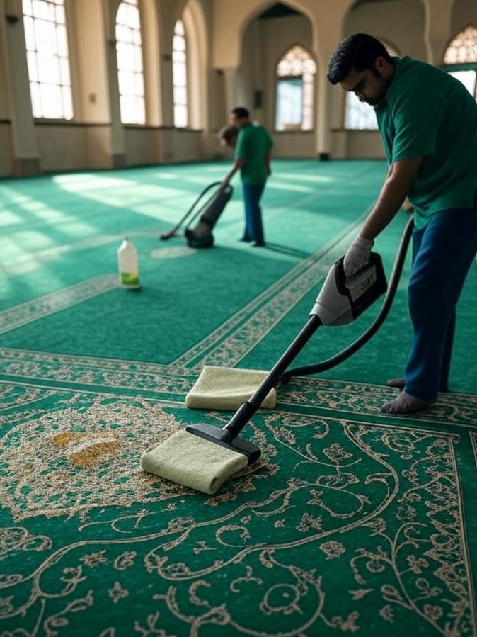 - Gunakan Jasa Profesional secara berkala untuk membersihkan karpet masjid secara menyeluruh.