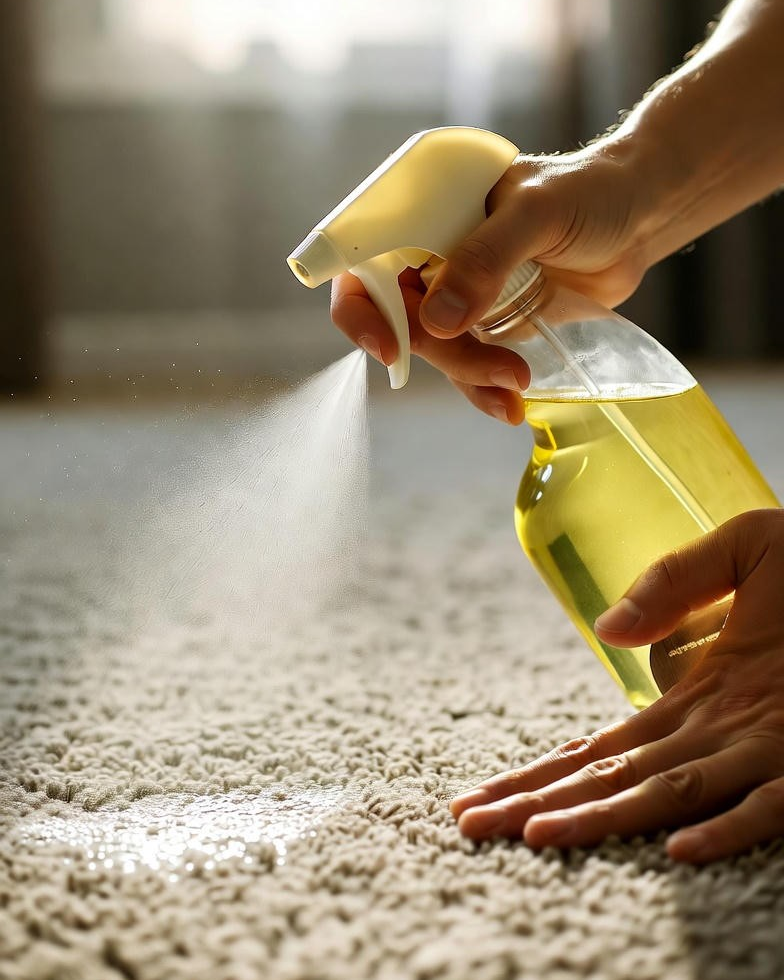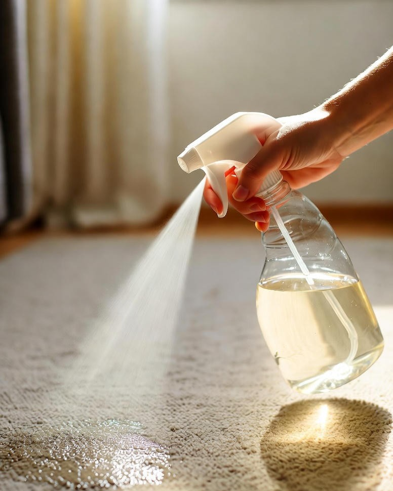 Jika bau masih tertinggal, campurkan cuka putih dan air hangat dengan perbandingan 1:1. Semprotkan larutan ini secara ringan ke permukaan karpet (jangan sampai terlalu basah). Cuka bekerja menetralkan partikel penyebab bau asap tanpa merusak serat karpet. Setelah itu, biarkan kering dengan bantuan kipas angin.