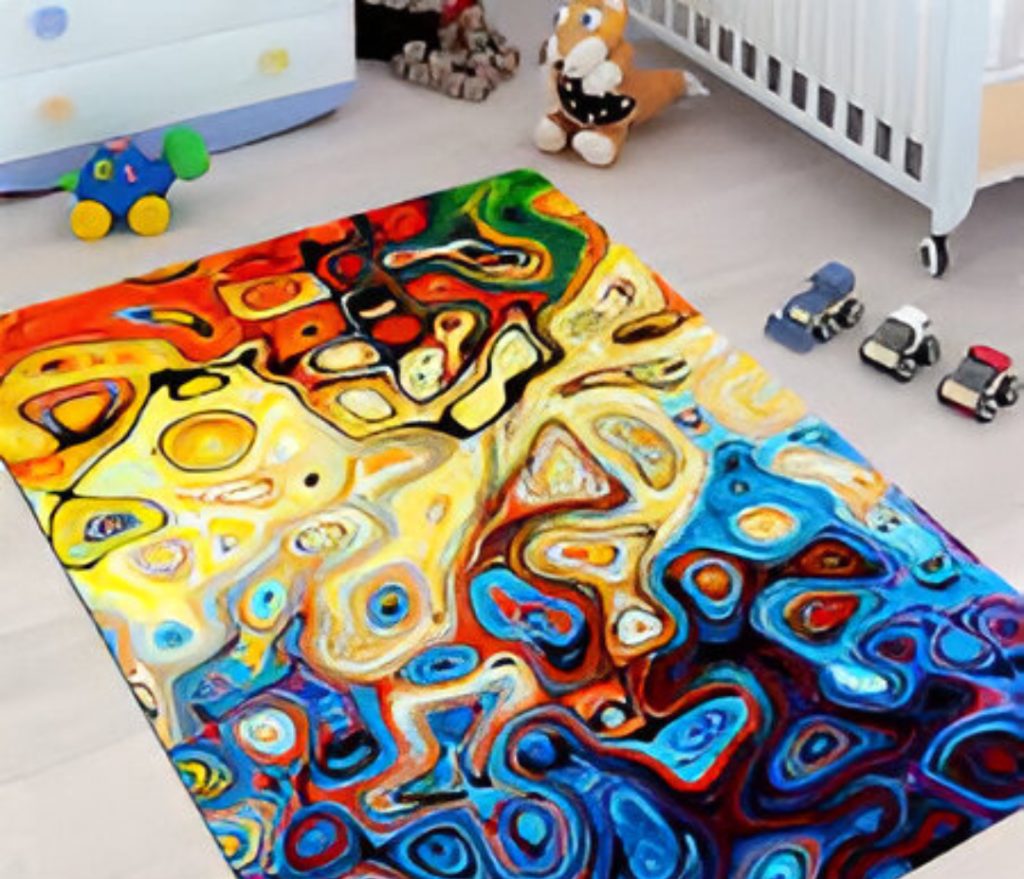 - Pilih karpet dengan warna yang sedikit kontras agar tidak “tenggelam” di kayu.