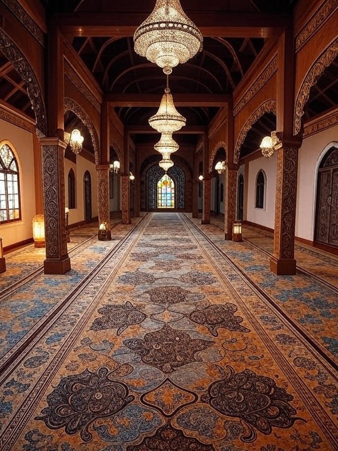 Agar karpet menyatu dengan arsitektur, tambahkan elemen dekoratif lain seperti tirai, lampu gantung, atau ornamen dinding yang memiliki motif senada. Ini akan memperkuat identitas budaya lokal masjid Anda sekaligus menciptakan suasana ibadah yang lebih khusyuk dan indah.