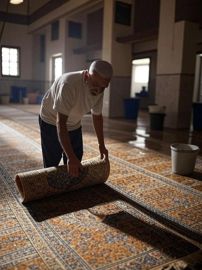 - Menjaga kebersihan karpet agar jamaah tetap nyaman.
